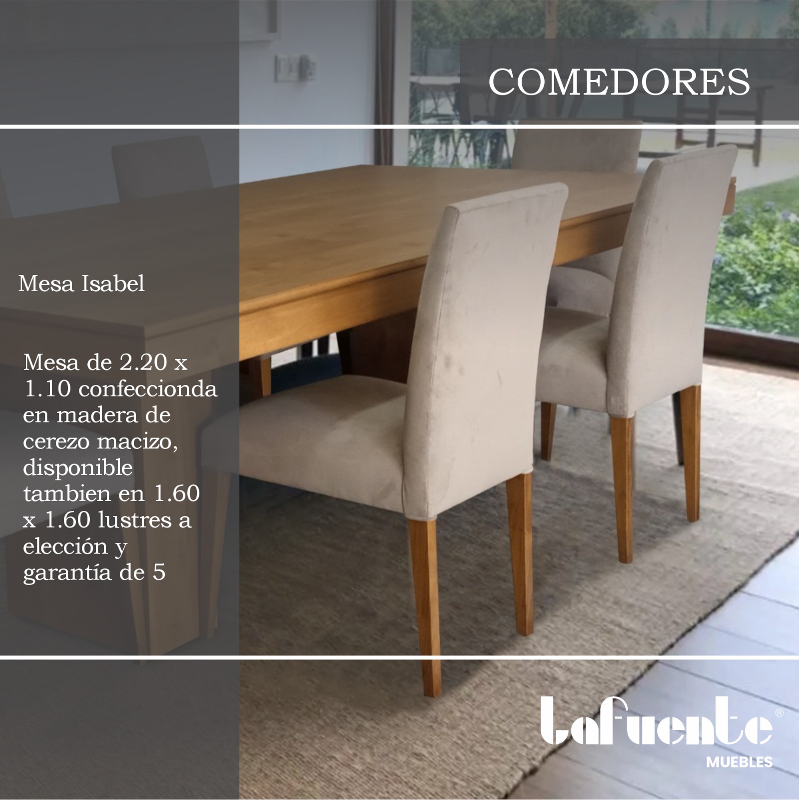 Mesa de comedor Isabel, disponible en varias medidas confeccionada en madera de Guatambú con lustres a elección. Precio $935.000 efectivo o transferencia.