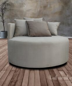 Sillón redondo Canto, tapizados y almohadones a elegir.